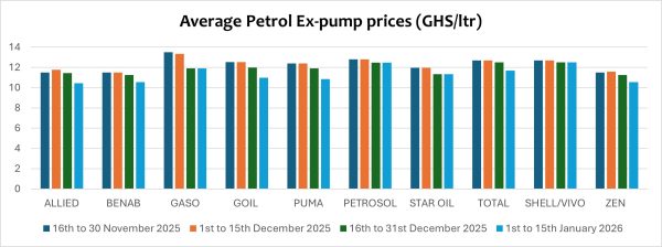 Pump prices of petrol have declined by about 2.76% on average. On a year-on-year basis, pump prices of petrol are down by about 23.80%. Given the relative stability of the cedi, petrol prices are expected to remain stable in 2026, contingent on the stability of global geopolitical and economic circumstances.