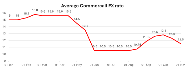 The cedi for the last two months dropped significantly from about GHS10.50/USD in August to about GHS12.80/USD at the end of September. The sharp depreciation was a key driver of the surge in pump prices over the period.  However, recent significant intervention by the BoG has stabilised the cedi, resulting in a substantial appreciation of the cedi from the second week of October. This will significantly lower pump prices of petroleum products in the coming window.