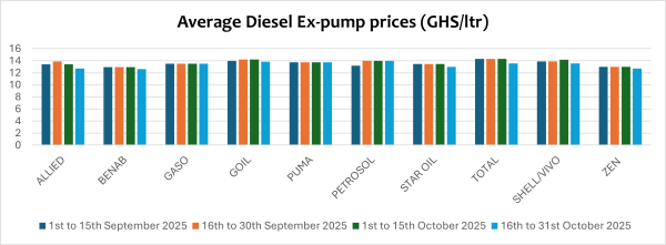 Due to the significant decline of refined petroleum product prices on the international market and the notable appreciation of the cedi in the current window compared to the previous window, pump prices are expected to decline in the coming window of 1st to 15th November 2025.