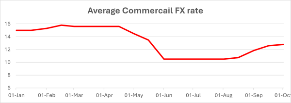 The Fufex30[1] for the first selling window of October (1st to 15th October) is estimated at GHS12.9000/USD, based on quotation from oil financing commercial banks. Moreover, the applicable spot rate for cash sales is estimated at GHS12.5000/USD based on quotations from oil financing commercial banks.